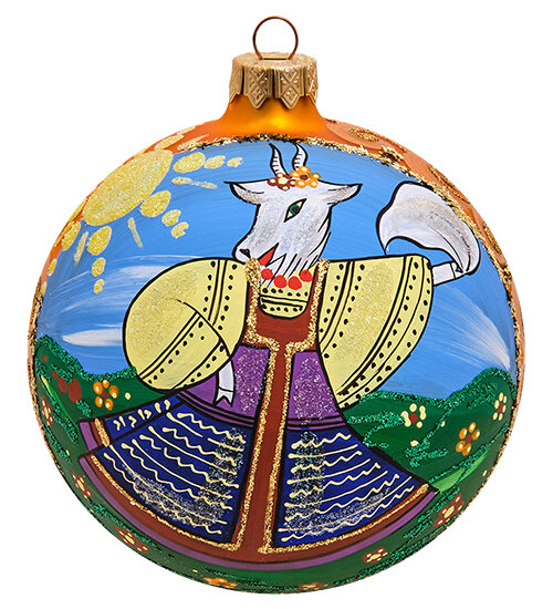 Елочное украшение Шар Козочка в сарафане 100 мм НФШ-1481/3 113-802737