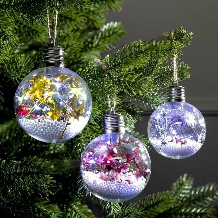Елочные шары Luazon Lighting «Мишура, звезды», батарейки, 5 LED, свечение белое, 3 шт