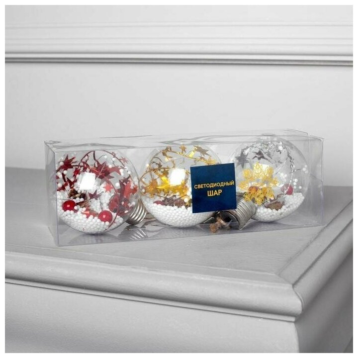 Елочные шары Luazon Lighting "Мишура, звезды", батарейки, 5 LED, свечение белое, 3 шт