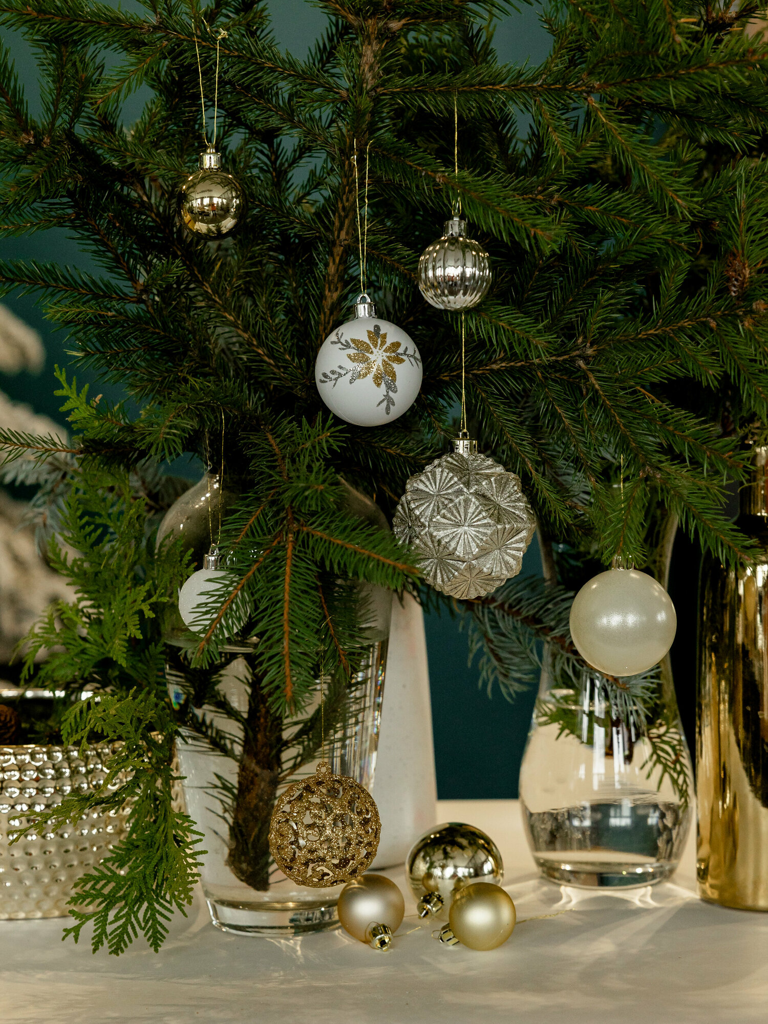 золотисто-белые шишки на елку с объемным узором - 3 штуки