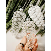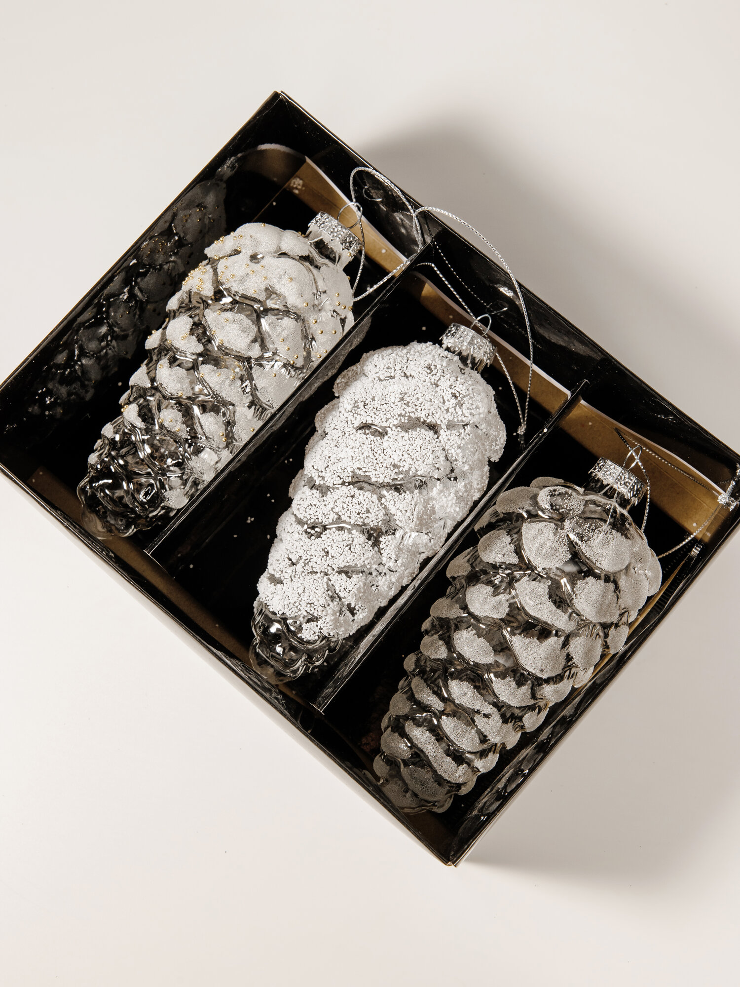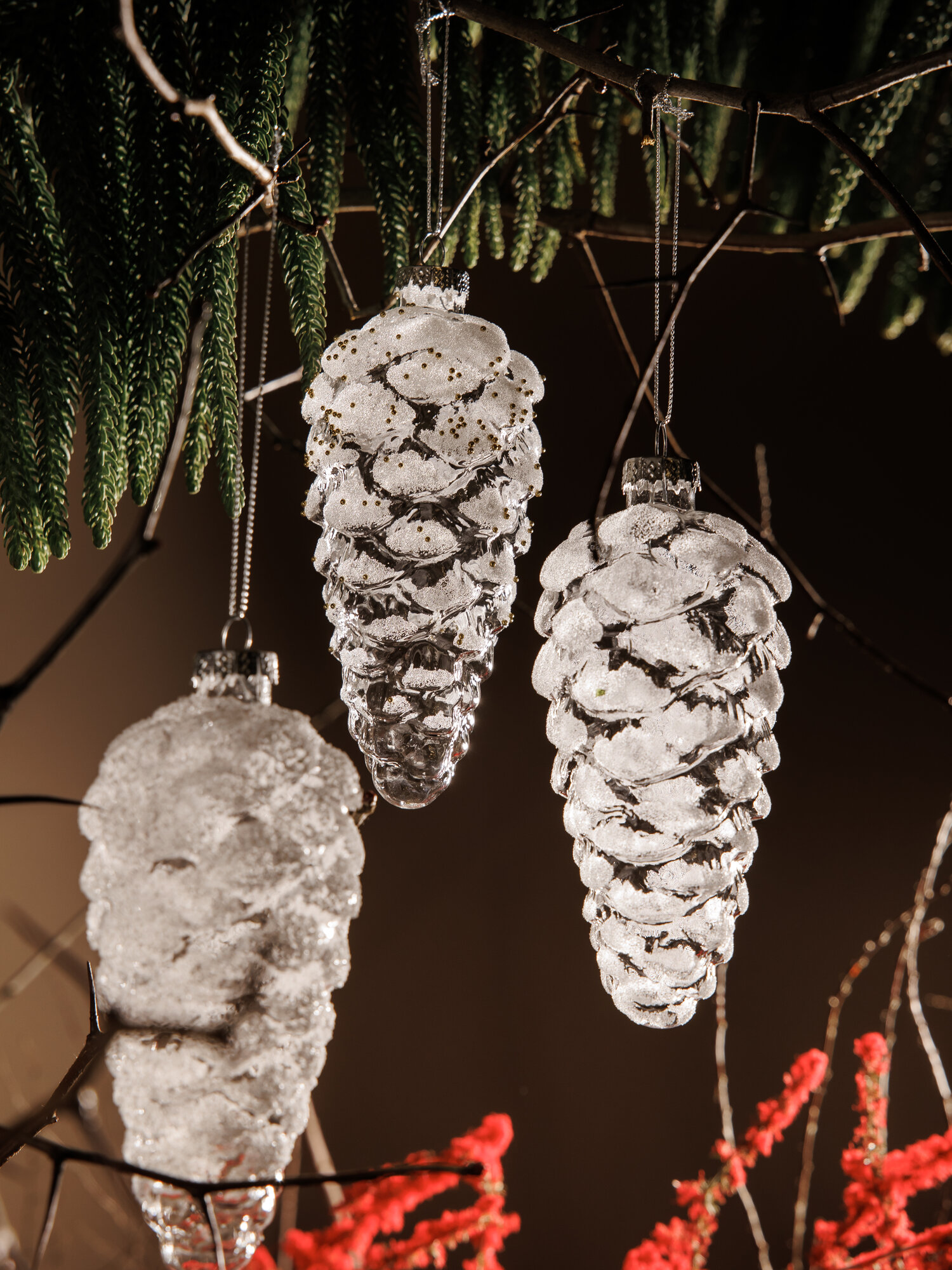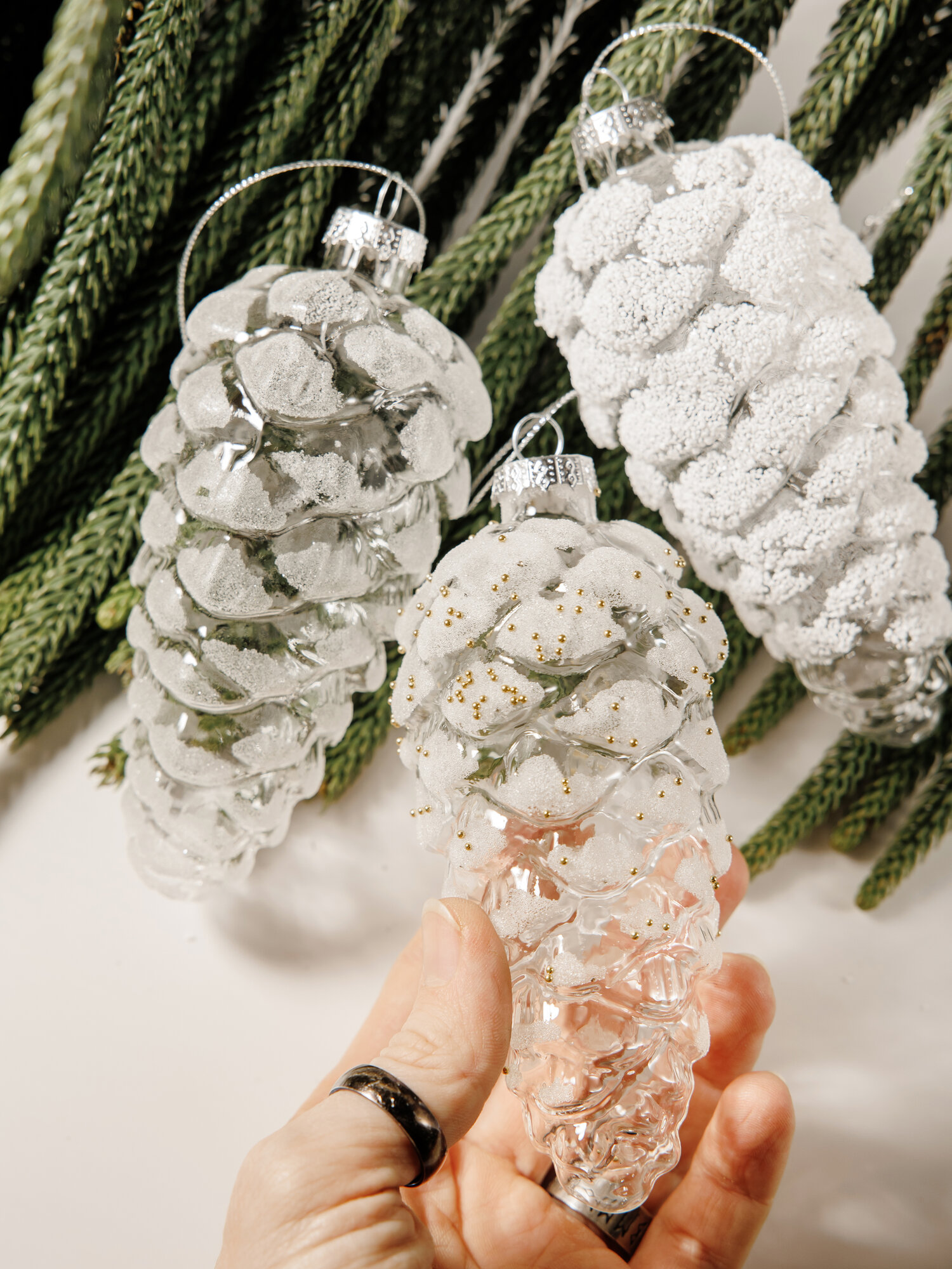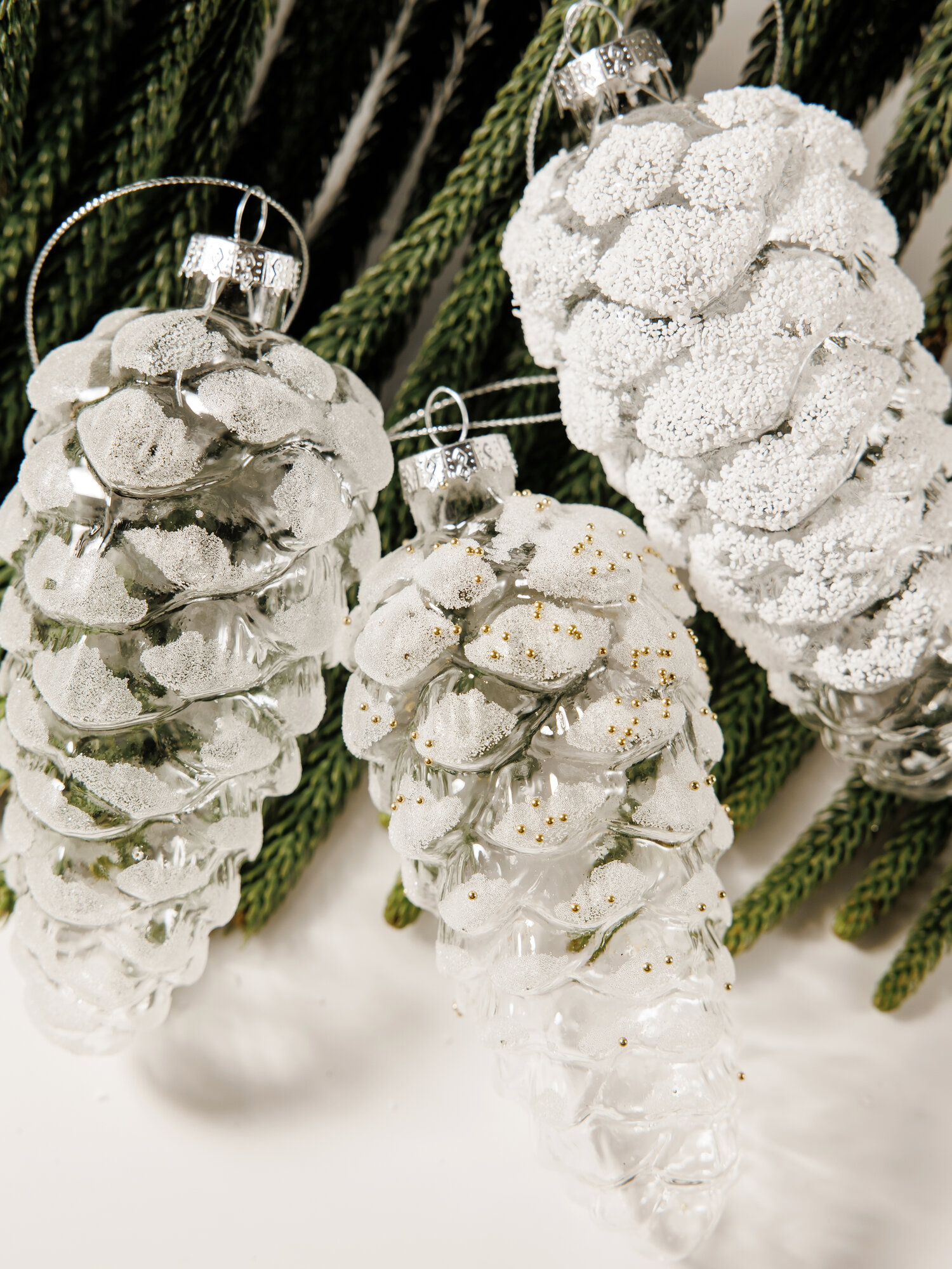 Купить Стеклянные шишки на елку — Лесные Дары (белый) 3шт с доставкой по всей России.