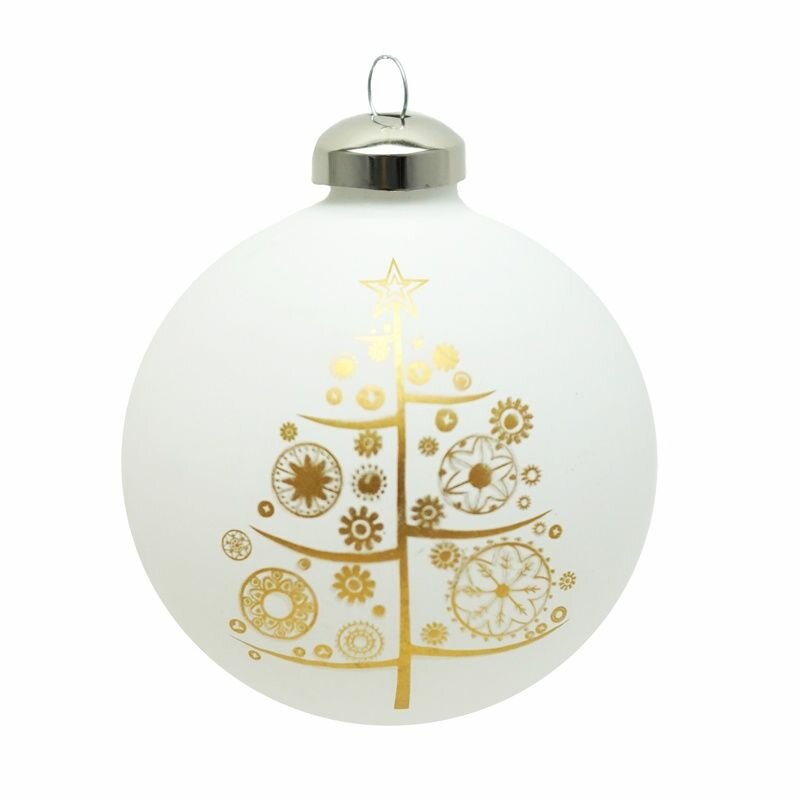 Елочный шар Веселый праздник белый «Золотая ель», в подарочной упаковке