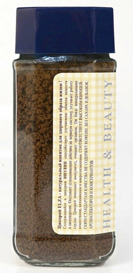 Растворимый гранулированный цикорий Elza Natural Chicory высшего качества натурален на 100 %. Присутствующий в продукте инулин стимулирует пищеварение и метаболизм, успокаивает нервную систему, помогает нормализовать работу сердца. Цикорий богат витаминами и полезными микроэлементами, не содержит кофеина, сахара. Благодаря такому составу укрепляет иммунитет. Несомненный плюс продукта — наличие белковых веществ, помогающих взбодриться. Спортсмены, путешественники, просто активные люди выбирают такой напиток вместо кофе и как полезное дополнение к перекусу. Приготовить цикорий несложно. Перемешать растворимые гранулы (1 чайную ложку) с горячей водой (200 мл). При желании влить молоко либо сливки, добавить сахар или сироп. Цикорий Эльза — отличный заменитель кофе, притупляет чувство голода, а также содержит полезные вещества. Цикорий с инулином, высокое содержание инулина.