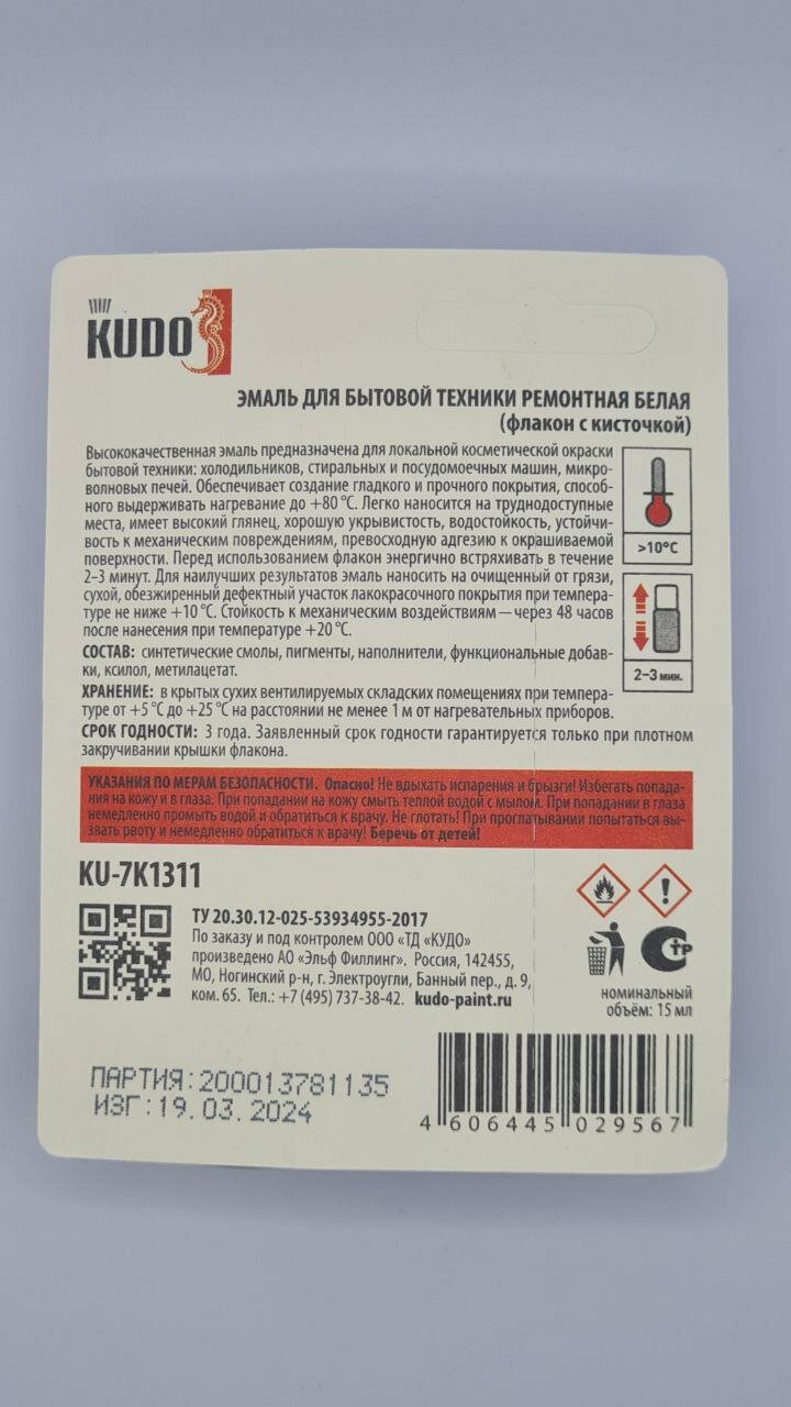Купить Эмаль KUDO для бытовой техники с кисточкой, 15 мл, белая, KU-7K1311, 4шт с доставкой по всей России. Эмаль KUDO для бытовой техники с кисточкой, 15 мл, белая, KU-7K1311, 4шт: сравнение цен, характеристики, фото, актуальное наличие и цены.