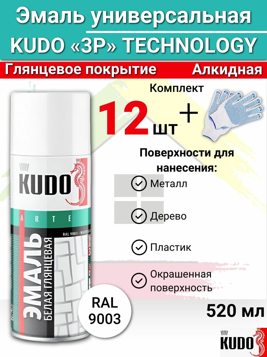 Купить Эмаль универсальная KUDO 520 мл белая глянцевая KU-1001 12 штук + перчатки с доставкой по всей России. Эмаль универсальная KUDO 520 мл белая глянцевая KU-1001 12 штук + перчатки: сравнение цен, характеристики, фото, актуальное наличие и цены.