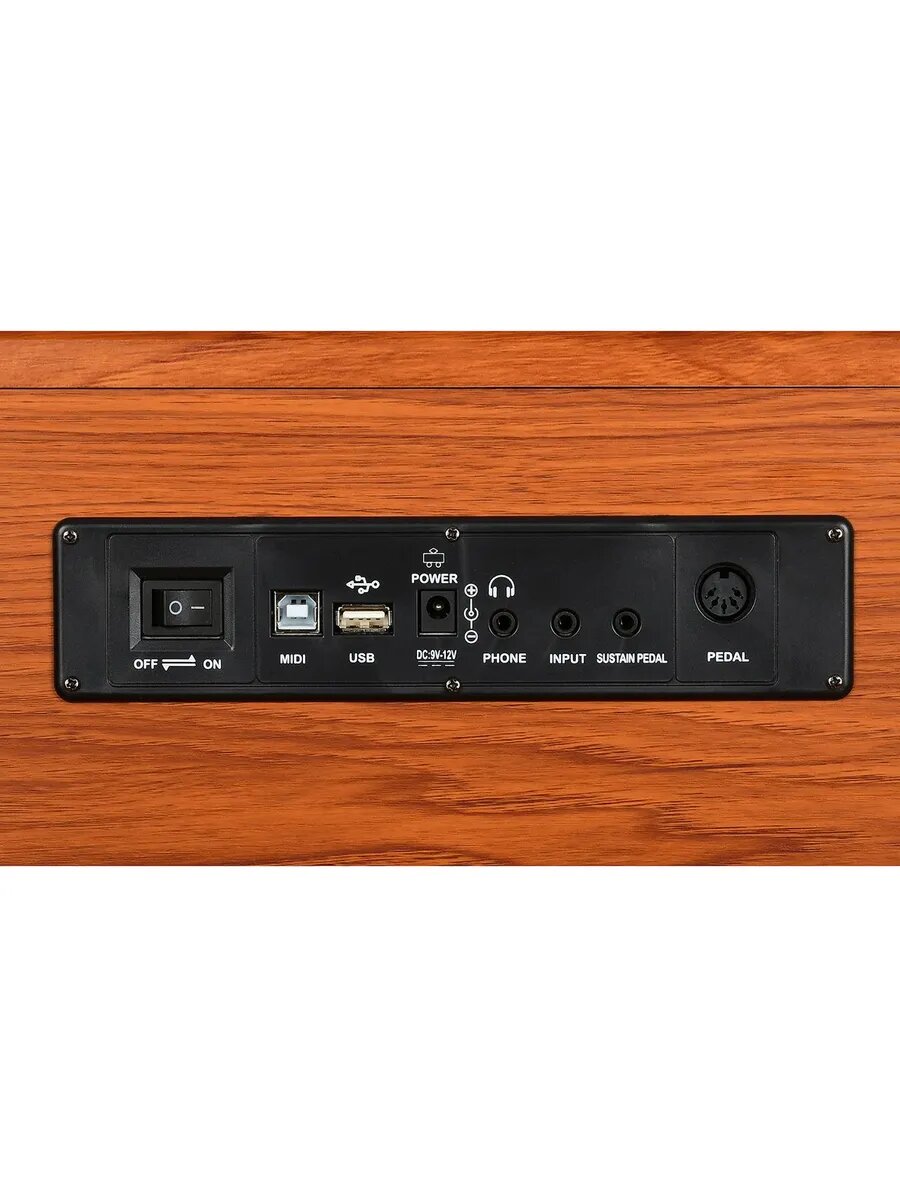 EMILY PIANO D-52 BR Цифровое фортепиано со стойкой в комплекте 88 полноразмерных клавиш фортепианного типа Цифровое пианино Клап (откидная крышка, закрывающая клавиатуру) стойка и педали в комплекте 88 полноразмерных клавиш фортепианного типа молоточковый механизм (взвешенные клавиши, динамическая клавиатура) Приятное звучание 81-голосая полифонияпри нажатой педали сустейн, 128 при отпущенной 900 тембров различных музыкальных инструментов 700 встроенных ритмов для всех видов аккомпанемента от рок-н-ролла до поп-музыки и джаза для экспериментов на любой вкус 110 демонстрационных композиций 1 цифровой дисплей Встроенная акустика 2 по 20 Вт Функция метронома Разделение клавиатуры Функция дуэта для игры в 4 руки Функция записи и воспроизведения Режим наложения звука Функция генерации аккордов Аудио вход/выход Разъем для подключения наушников Разъем для подключения 3 педалей Отдельный разъем для подключения сустейн Порт USB/MIDI MP3 проигрыватель В комплекте: пюпитр, блок из 3 педалей, Адаптер питания 220 В, разборная деревянная стойка, руководство по эксплуатации на русском языке. Размеры упаковки Длина 145см высота 30 ширина 46 вес 38 кг С помощью порта USB/MIDI вы можете подключить инструмент к компьютеру или любому устройству, поддерживающему MIDI, для удобного и быстрого создания музыкальных проектов