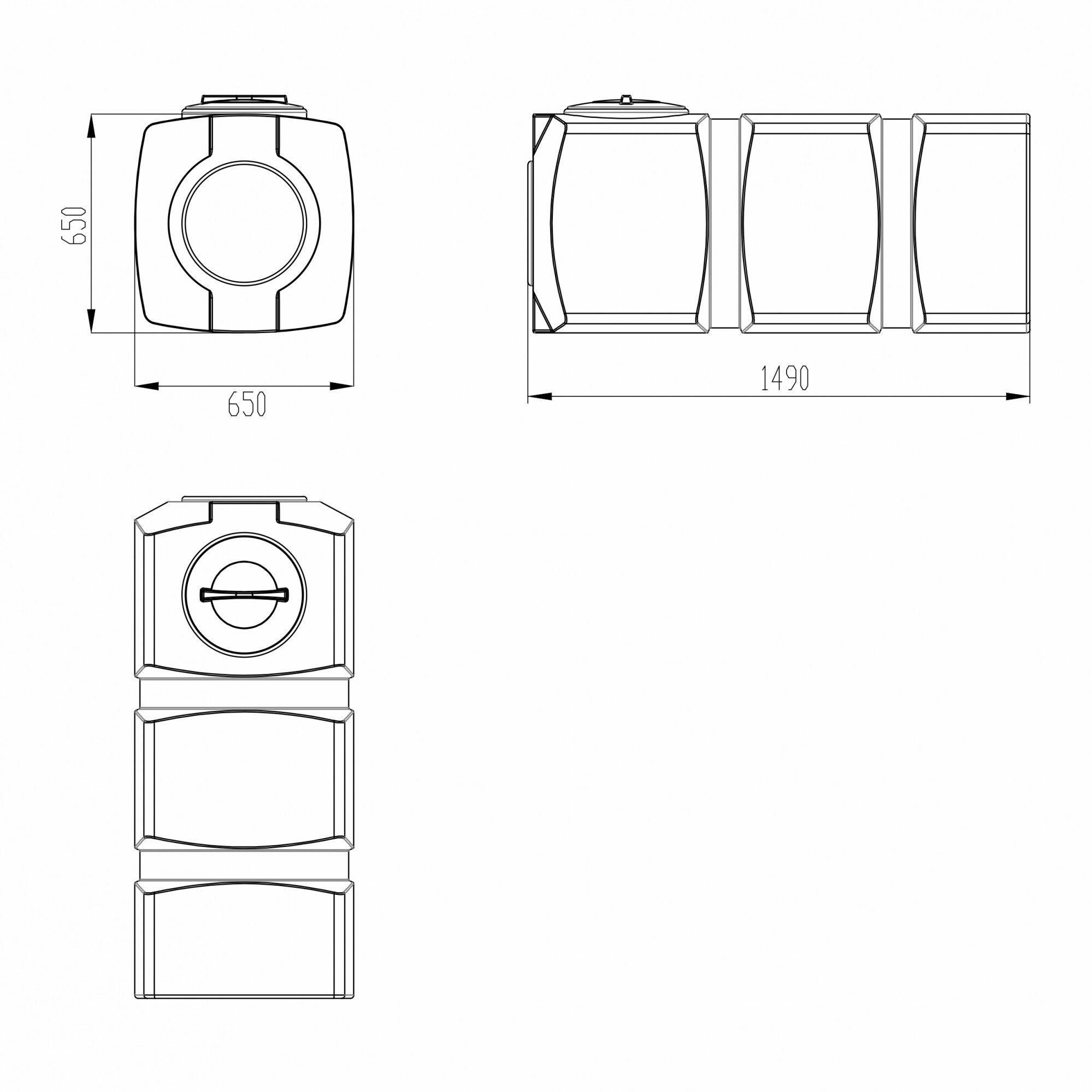 Горизонтальная прямоугольная пластиковая емкость объемом 500л предназначена для стационарного хранения питьевой воды, пищевых продуктов, нефтепродуктов и химических веществ.