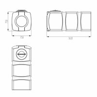 Горизонтальная прямоугольная пластиковая емкость объемом 750л предназначена для стационарного хранения питьевой воды, пищевых продуктов, нефтепродуктов и химических веществ.