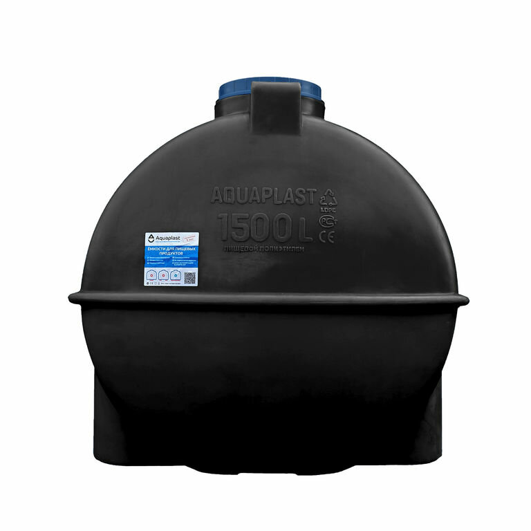 Емкость АкваПласт ОГ 1500 (черная) предназначена для стационарного хранения питьевой воды, пищевых продуктов, агресивных сред (по согласованию), дизельного топлива.