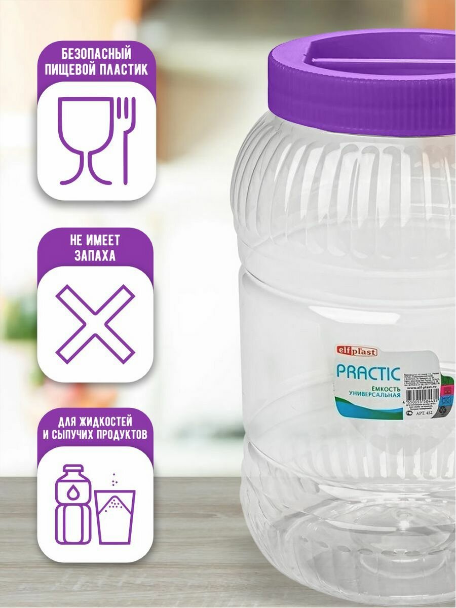 Емкость elfplast «Practic» для хранения универсальная с крышкой 5 л 2 шт, (прозрачный/фиолетовый) 453: сравнение цен, характеристики, фото, актуальное наличие и цены.