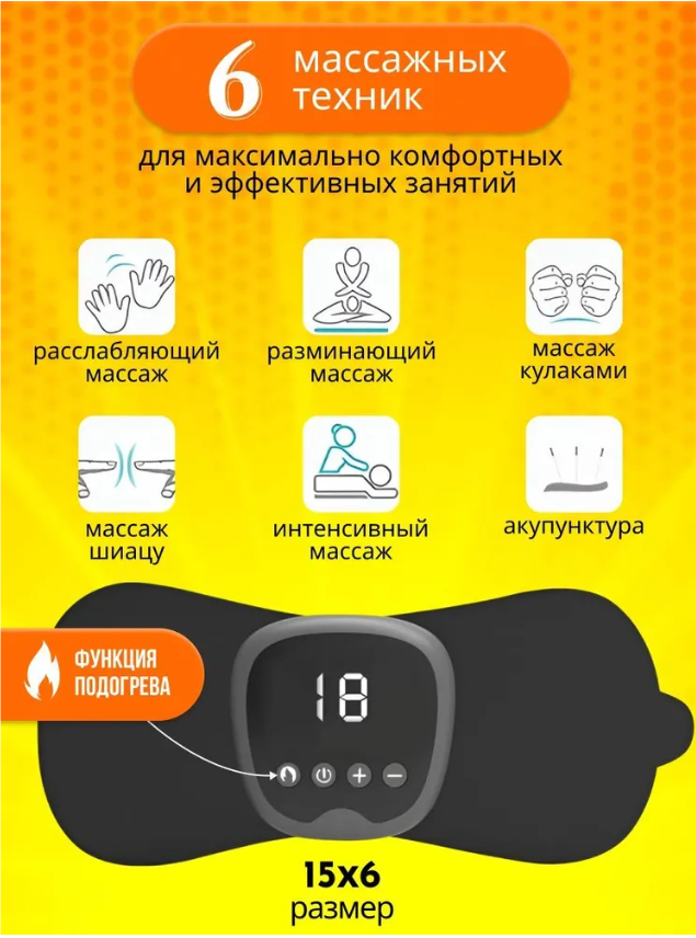 EMS-массажер с разогревающим эффектом/Управление пультом/ 6 режимов/Черный: сравнение цен, характеристики, фото, актуальное наличие и цены.