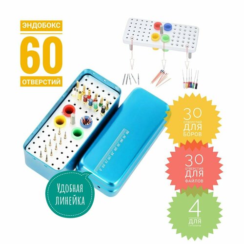 Эндобокс-Подставка Incidental (TYPE 64H) для стерилизации и хранения , удобства сортировки 64 инстр(30 боров, 30 файлов и гуттаперчи, с крышкой ) Голубой.: сравнение цен, характеристики, фото, актуальное наличие и цены.