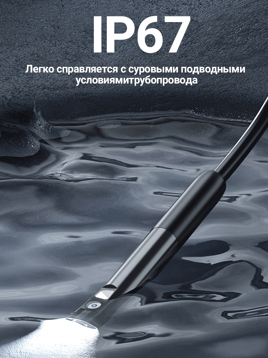 Эндоскоп автомобильный с экраном и 3 камерами — ваш универсальный помощник в диагностике! Для чего подойдет? Автомобильная диагностика — проверка цилиндров двигателя, поршней, клапанов. Ремонт техники — осмотр внутренних механизмов. Сантехника и строительство — проверка труб, вентиляции, скрытых полостей. Компактный объектив гибкой камеры имеет длину всего 2,9 см и линзу диаметром 8 мм, обеспечивая разрешение 1920x1080 HD. Длина кабеля составляет 2 метров, что делает возможным обследование даже в самых узких и труднодоступных местах. Аккумулятор эндоскопа с емкостью 2600 мАч способен работать до 4 часов без необходимости подзарядки, что особенно актуально для продолжительных проверок и ремонтных работ. Полная зарядка устройства занимает 3 часа. В комплект входят ДВА сменные насадки, которые значительно расширяют возможности эндоскопа: магнит, крючок . Магнит поможет вам извлечь металлические предметы из труднодоступных мест, например, болтики или ключи. Крючок позволяет захватить и вытащить необходимый предмет, такой как упавшее кольцо в водостоке.