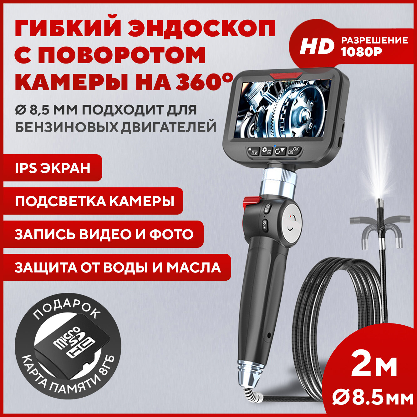 Эндоскоп автомобильный с экраном, поворотный, 8.5 мм, 2 м