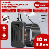 Эндоскоп для смартфона автомобильный c 2 камерами, с подсветкой, гибкий, для iOS и Android, диаметр 5,5 мм, длина 10 м