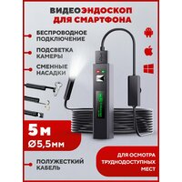 Эндоскоп для смартфона автомобильный гибкий с подсветкой для iOS и Android, диаметр 5.5 мм, длина 5 метров.