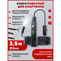 Эндоскоп для смартфона автомобильный гибкий с подсветкой для iOS и Android, диаметр 8 мм, длина 3.5 метров.