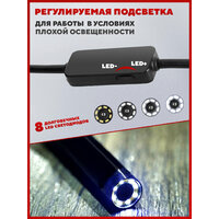 Этот эндоскоп оснащен регулируемой светодиодной подсветкой, состоящей из 8 светодиодов, обеспечивающей оптимальное освещение осматриваемой области даже в условиях недостаточной освещенности. Яркость подсветки можно плавно регулировать с помощью колесика, расположенного на кабеле, от максимальной до полного выключения. Эндоскоп позволяет погружать камеру на глубину до 1,5 метров на срок до 30 минут, что делает его пригодным для использования под водой. Это открывает возможности для осмотра и диагностики в различных подводных средах. Он оснащен гибким полужестким кабелем-зондом, который обеспечивает уникальное сочетание гибкости и устойчивости формы. Вы можете легко изгибать зонд и придавать ему нужную форму, это позволяет получить доступ к труднодоступным местам и осмотреть объекты под различными углами.
