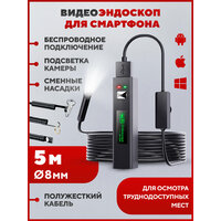 Эндоскоп для смартфона автомобильный гибкий с подсветкой для iOS и Android, диаметр 8 мм, длина 5 метров.