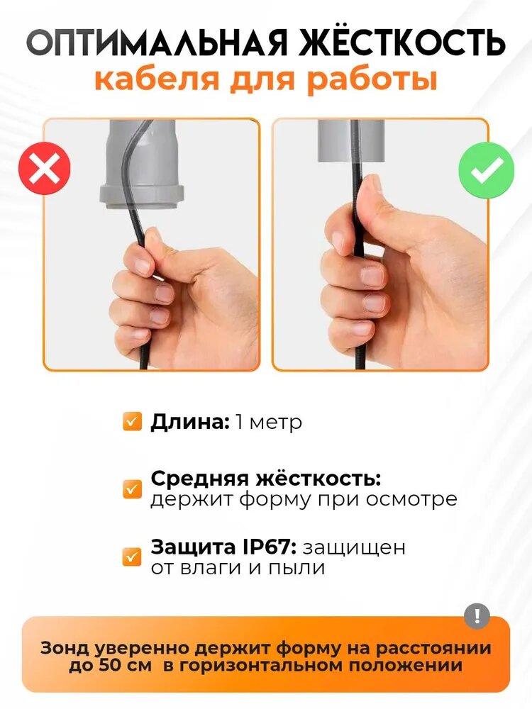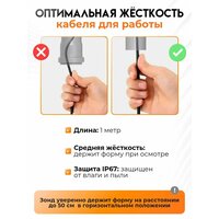 Автомобильный эндоскоп поворотный с экраном водонепроницаемый - это идеальное решение для тех, кто работает в сфере частного автоподбора и сервиса и нуждается в высокотехнологичном оборудовании для диагностики и ремонта. Этот эндоскоп оснащен удобной системой управления, которая позволяет легко перемещать камеру внутри автомобиля, обеспечивая полную видимость всех необходимых участков. Для повседневной работы рекомендуем использовать более дорогую модель TD450 которую вы также можете найти в нашем магазине. Основные преимущества видеоскопа: - Запись фото и видео с звуком - Защита от перегрева - Поворотная камера диаметров 6.2 мм позволяет исследовать труднодоступные места, такие как двигатель, коробка передач, катализатор, номер двигателя, рамы и кузова. - Регулируемая подсветка: настраивайте яркость для наилучшего изображения - Удобный дизайн обеспечивают эффективность работы в условиях автосервиса или выездной проверки. - Защита от воды стандарта: IP67 Защитит проникновения внутрь технических жидкостей - Карта памяти в комплекте Этот бороскоп является незаменимым инструментом для профессионалов, которые стремятся к точности и качеству в своей работе. Приобретите его сегодня и сделайте свою профессиональную деятельность еще более успешной! Характеристики: Диаметр 6.2 мм Экран 4.3" Разрешение 1920x1080 FullHD Фокусное расстояние от 2 см IP67 (погружение до 1 метра на 30 минут) Встроенным аккумулятором 2000 мАч работает до 3 часов. Запись изображений и клипов