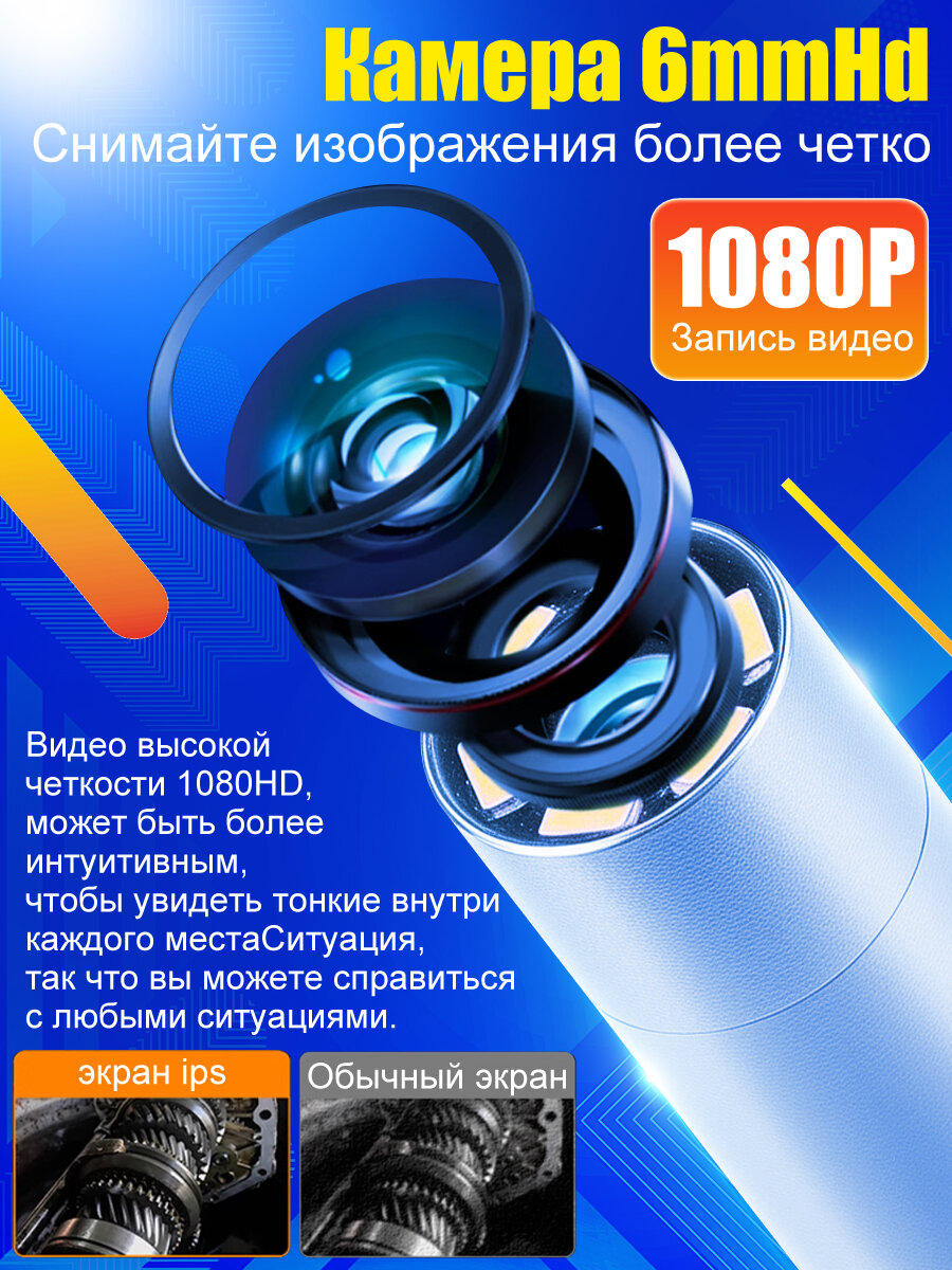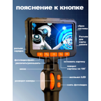 Эндоскоп ручной поворотный 180°+180° с 4.3"-дюймовым цветным HD 1080P дисплеем и фотосъёмкой на 3.9mm 1m кабеле, можно использоваться во многих случаях, когда необходим визуальный техосмотр. 1. в основном используется в автодвигателах, 2. в моторах мотоциклов, лодок, грузовиков, самолетов, 3. в системах отопления, вентиляции и кондиционирования воздуха, 4. в производстве электроэнергии, газа и масла(трубке) и так далее. Функция: ••• Меню: Картинку можно перевернуть на 180˚, увеличить/уменьшить её, остановить. Настройка на русском языке ! ••• Обязательно нужно вставить карту памяти чтобы используется снять фото и видео, и эндоскоп не сможет напрямую работать с телефоном ! • Эндоскоп автомобильный оснащен 4,3-дюймовым IPS-экраном с фокусным расстоянием 2-10 см для удобной диагностики и ремонта. • 6 высокоинтенсивных светодиода, обеспечивают визуальную поддержку для осмотра при любом уровне освещенности. • Водонепроницаемость по стандарту IP67 (только для объектива), позволяет использовать эндоскоп в водной и масляной средах. • Батарея 2000 mАh, работает на 4 часа, зарядиться на 3 часа. Чтобы продлить срок службы, рекомендуется заряжать его каждые три месяца