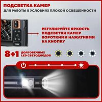 К вашему вниманию эндоскоп с двумя камерами 8мм экраном 4,3 дюйма и длиной 5 метров гибкий. Большой ЖК-дисплей с разрешением 1920х1080 и диагональю 4,3' отчётливо отобразит всё происходящее перед камерой. Встроенный аккумулятор 2000 мАч на 3-5 часов работы. Эндоскоп автомобильный имеет зонд диаметром 8 мм и кабель длиной 5 метров, который имеет гибкую конструкцию (можно придать различную форму). Видеоэндоскоп оснащен двумя 2,0-мегапиксельными CMOS-камерами, которые позволяют снимать четкие фото и видео в реальном времени. Это помогает найти проблему и принять правильное решение, экономя ваше время и средства. Что бы активировать боковую камеру нажмите и удерживайте клавишу 180 ° Фронтальный камера имеет 8 светодиодных ламп, которые обеспечивают яркое и четкое изображение даже в темноте. Благодаря этому, вы сможете легко получить доступ к труднодоступным местам, при механический осмотре, ремонте автомобилей или грузовиков, ремонт сантехники, и многое другое. Водонепроницаемая линза IP67 и вольфрамовый материал : обладает характеристиками теплоизоляции и защиты от химической коррозии, легко справляется с суровыми подводными условиями трубопроводов. Так же камера оснащена наноразмерным датчиком контроля температуры, для защиты её от перегрева. Незаменим для автосервиса! Автомобильный эндоскоп часто используют для проверки нагара внутри двигателя автомобиля, после технического обслуживания коробок передач, рам, компрессоров, трубы масла, и различные отливки. Советы : лучшее четкое расстояние наблюдения составляет 2-10 см! В открытом пространстве четкость изображения теряется так как свет подсветки не отражается. Технические характеристики: Пиксель: 2 МП Разрешение изображения: 1920*1080(JPG) Запись видео: 1920*1080(AVI) Глубина резкости: 2-10 см Водонепроницаемость камеры: IP67 Диаметр камеры: 8 мм Количество камер: 2шт. Скорость кадров: 15-25FPS Угол обзора: 180 ° Встроенный аккумулятор 2000 мАч на 3-5 часов работы. Температура камеры: -10 ℃ ~ 80 ℃ Рабочая температура: 0 ℃ ~ 45 ℃ Порт: USB-C Цвет: черный Сертификация: CE/RoHS/ISO9001 Комплектация 1 * Эндоскоп с двумя камерами 8мм экраном 4,3 дюйма, длиной 5 метров (гибкий) 2 * Кабель для зарядки 1 * Руководство по эксплуатации 1 * крючок 1 * магнит 1 * зеркало 75* 1 * крепление