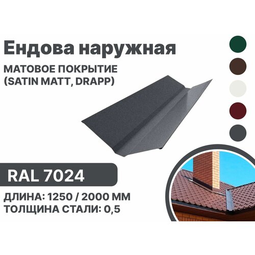 Купить Ендова наружная матовая (Satin matt, drap) для металлочерепицы и гибкой кровли RAL-7024 2000мм 10шт в упаковке с доставкой по всей России. Ендова наружная матовая (Satin matt, drap) для металлочерепицы и гибкой кровли RAL-7024 2000мм 10шт в упаковке: сравнение цен, характеристики, фото, актуальное наличие и цены.