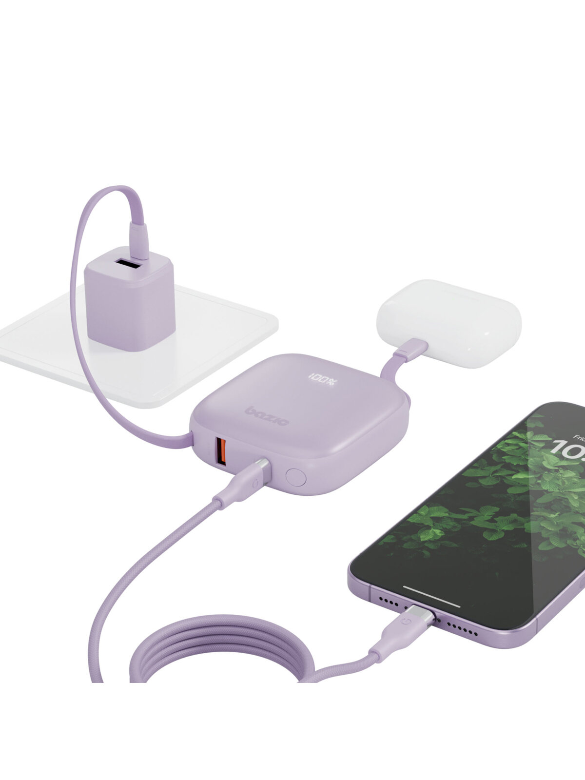 Energea АКБ Bazic GoPower Fusion, 10000 4in1 USB-C+A + кабели USB-C/Lighning PD20W, Lavender: сравнение цен, характеристики, фото, актуальное наличие и цены.