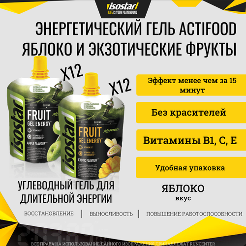 Купить Энергетический гель Isostar Actifood Экзотические фрукты 12 шт и Яблоко 12 шт. по 90 г с доставкой по всей России.