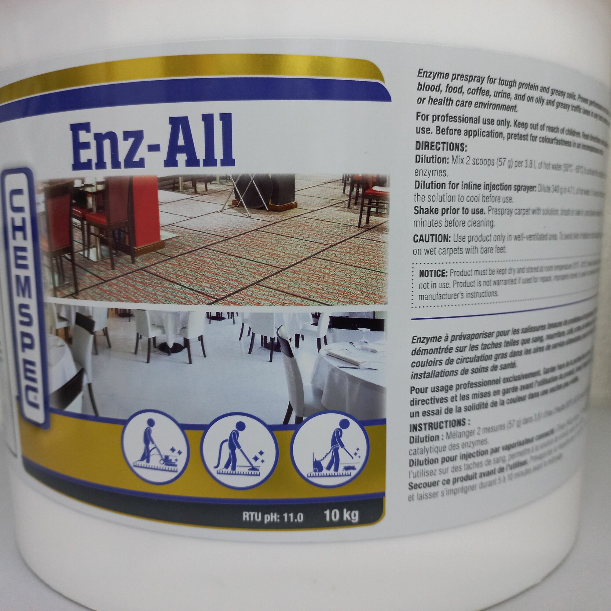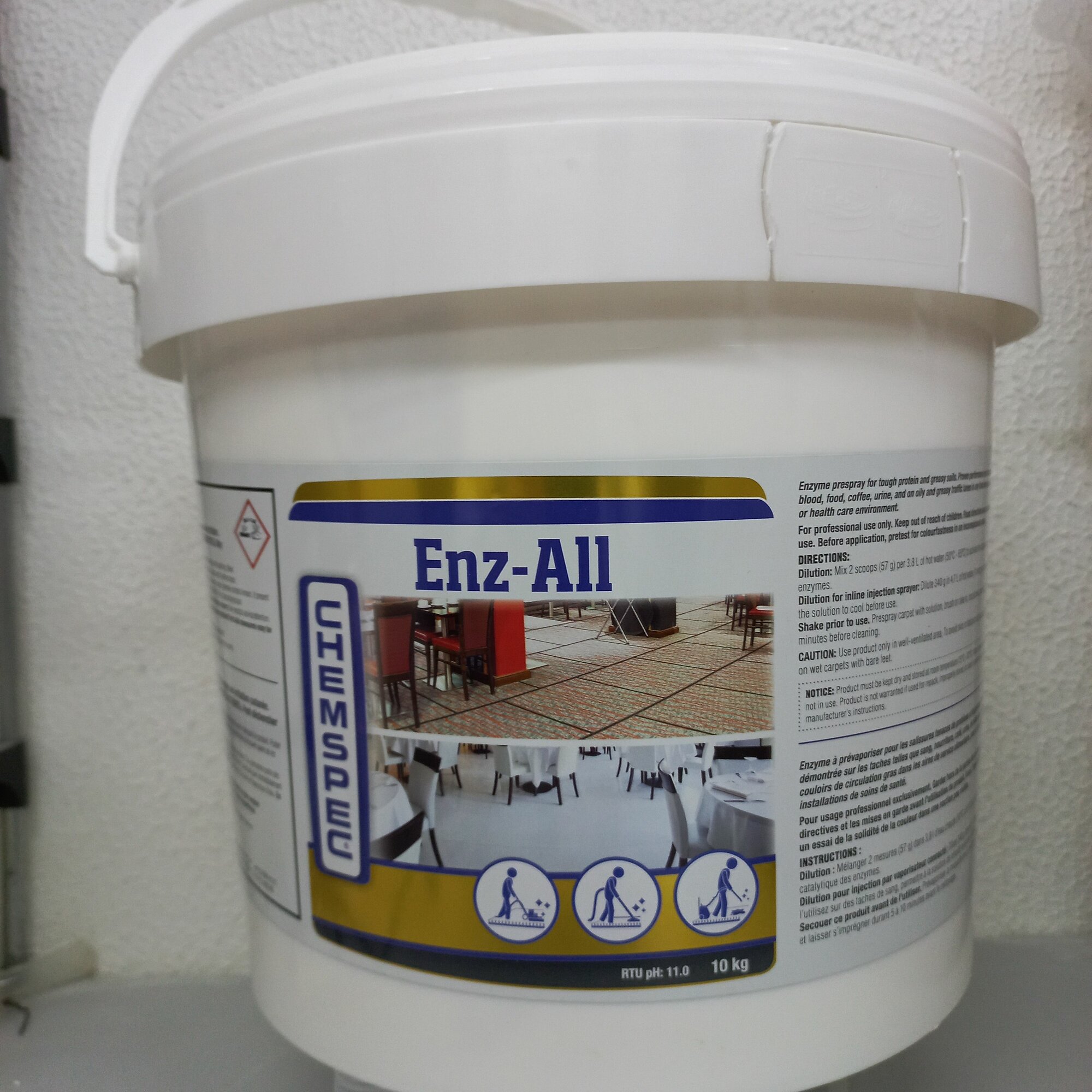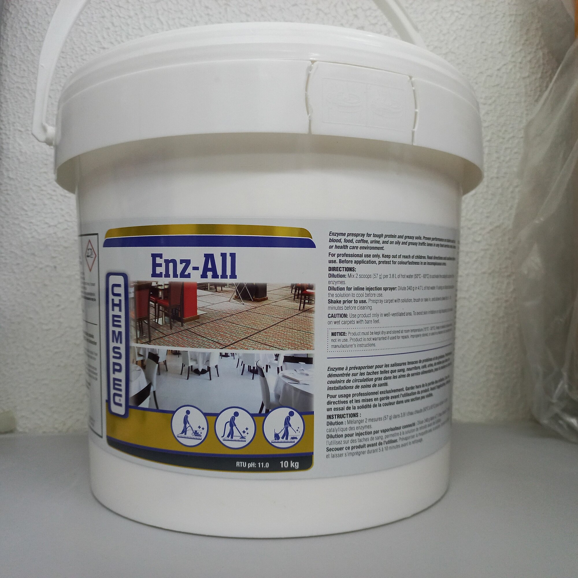 Одно из самых сильных средств для предварительной обработки на рынке! Специально разработан для борьбы с сильнейшими белковыми, въевшимися загрязнениями. Эффективно удаляет кровь, рвоту, траву и пищевые пятна с ковра. Отлично себя зарекомендовал для обработки затоптанных дорожек. Также ENZ-ALL очень эффективен при удалении пятен мочи и фекалий. Незаменим для чистки ковров в кафе, столовых, ресторанах, барах, общепитах.