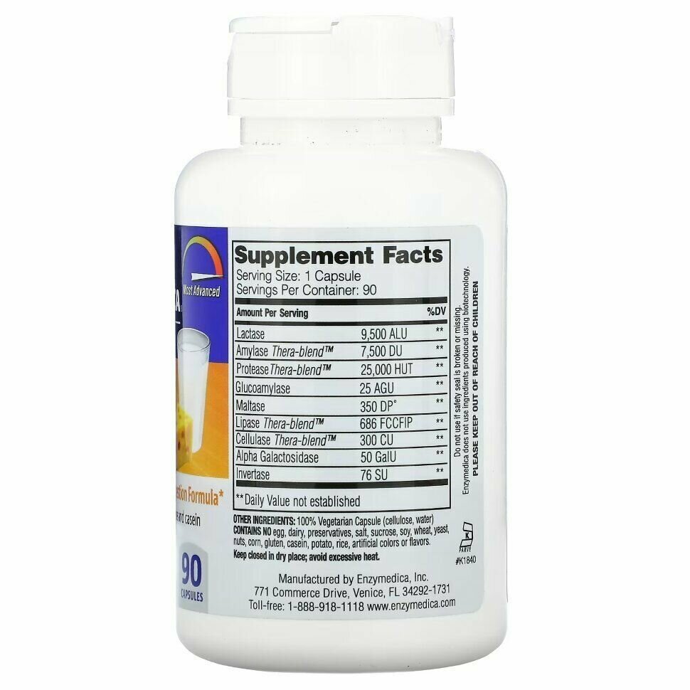 Принимать по 1 капсуле во время каждого приема пищи, содержащей молочные продукты. При необходимости можно увеличить дозу.