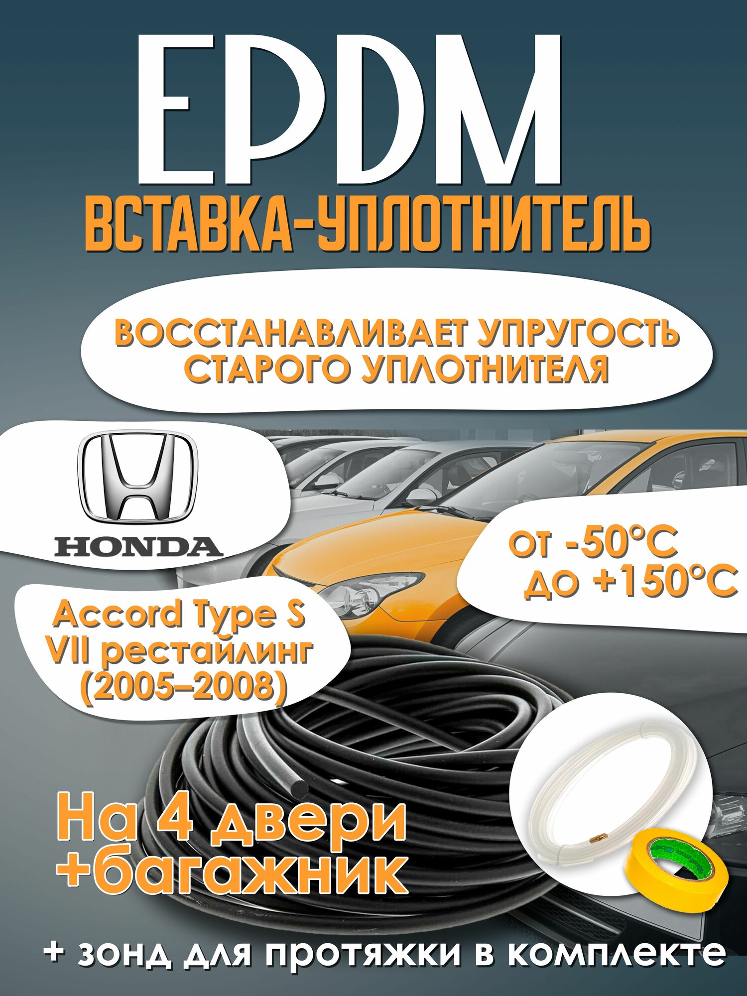 EPDM вставка-уплотнитель для дверей автомобиля Honda Accord Type S VII рестайлинг (2005-2008) / Хонда Аккорд Type S 7 поколение рестайлинг.