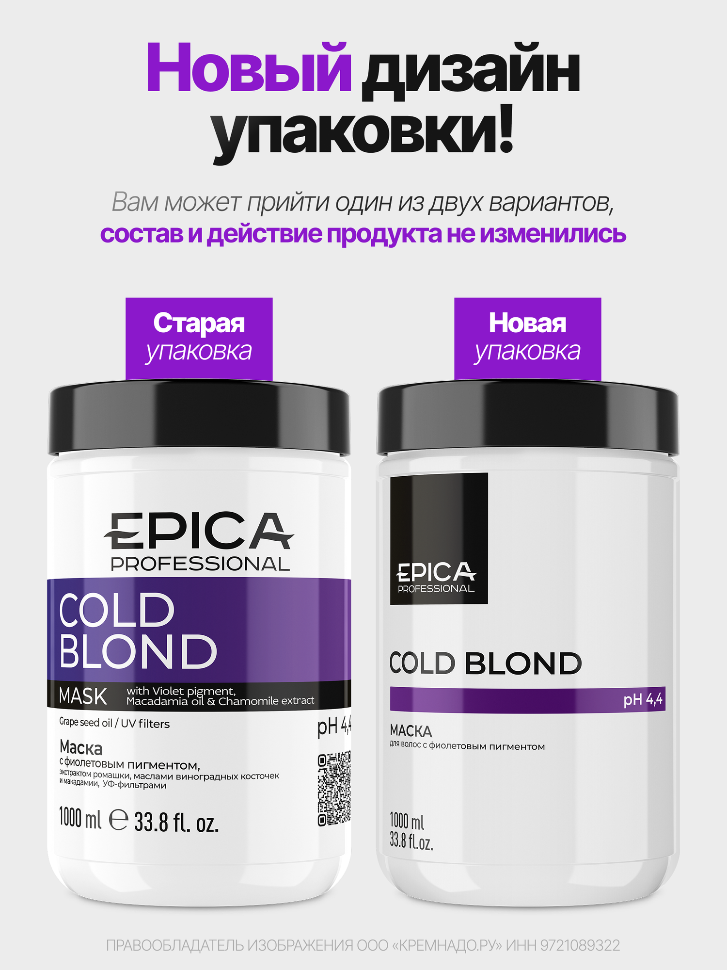 Купить EPICA Professional Cold Blond Маска с фиолетовым пигментом, 1000 мл. с доставкой по всей России. EPICA Professional Cold Blond Маска с фиолетовым пигментом, 1000 мл.: сравнение цен, характеристики, фото, актуальное наличие и цены.