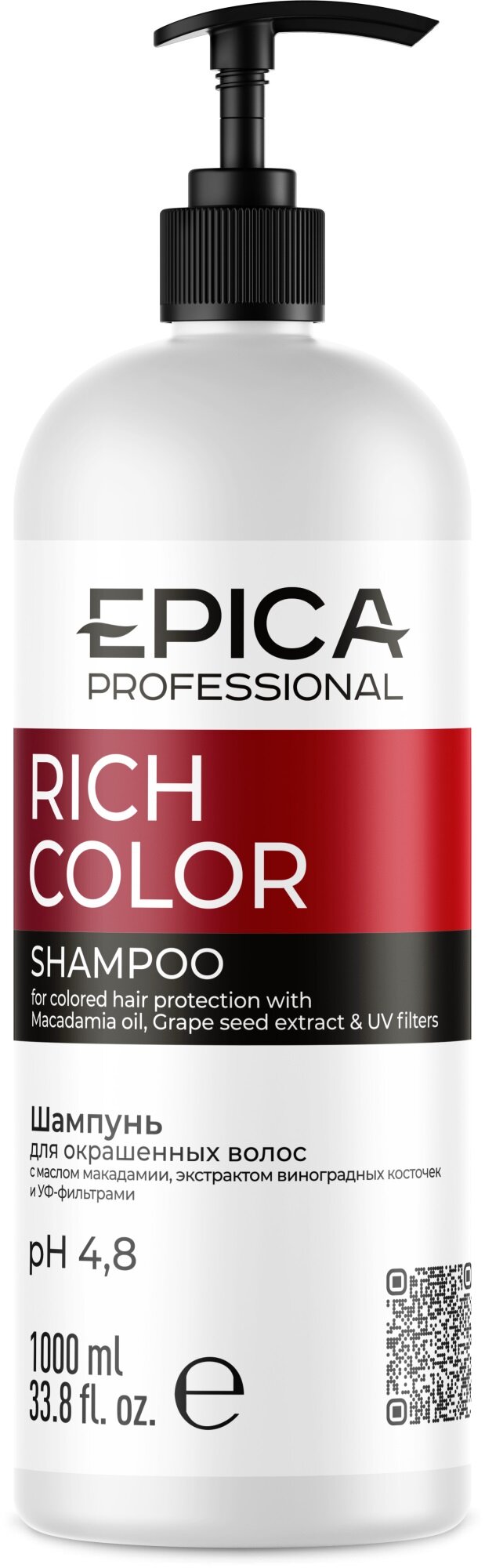 Купить EPICA Professional Rich Color Шампунь для окрашенных волос с маслом макадамии и экстрактом виноградных косточек, 1000 мл. с доставкой по всей России. EPICA Professional Rich Color Шампунь для окрашенных волос с маслом макадамии и экстрактом виноградных косточек, 1000 мл.: сравнение цен, характеристики, фото, актуальное наличие и цены.