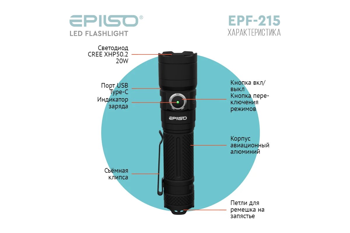 Купить Epilso Фонарь ручной CREE XHP50.2 20W 4000 Lm EPF-215 с доставкой по всей России.