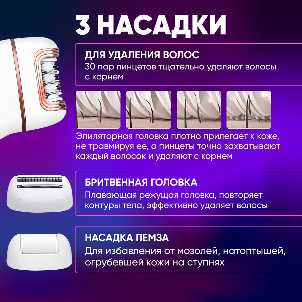 Купить Эпилятор женский Kemei KM-1207 беспроводной, белый / Машинка электрическая для удаления волос, депиляции с доставкой по всей России.
