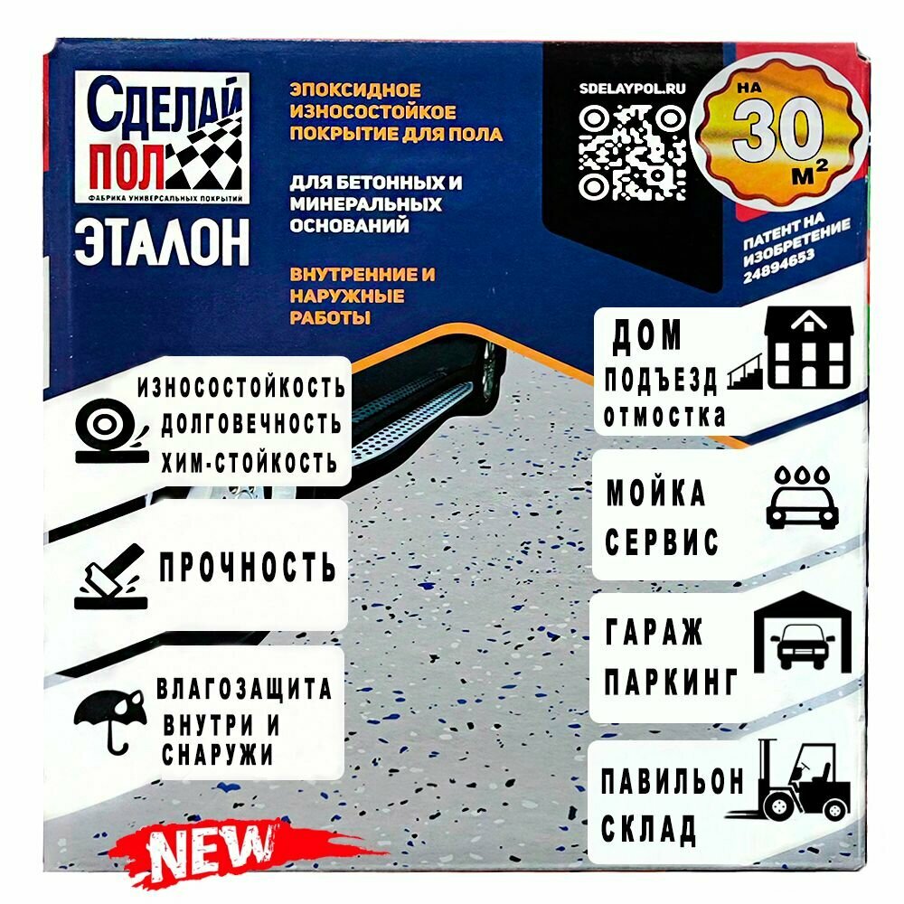 Двухкомпонентное эпоксидное покрытие Сделай Пол "Эталон" - это многофункциональный состав на эпоксидной основе, изготовленный с использованием современных технологий. Предназначен для получения идеального, прочного и красивого покрытия. разработан с учетом современных требований к полам и включает все необходимые материалы для быстрого и самостоятельного устройства новейшего высокопрочного напольного покрытия.