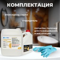 - Используется для создания покрытия типа "Каменный ковер" и склеивания мелких фракций камня в массе. Для этого используется пропорция 20кг каменной крошки/1кг смолы. Отлично подходит для заливки в смолу каменной крошки, гальки.