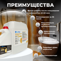 - Расход на 20кг каменной крошки - 1кг смешанных компонентов