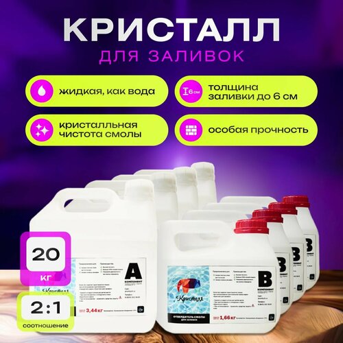 Купить Эпоксидная смола для столешниц «Кристалл» 20кг с доставкой по всей России. Эпоксидная смола для столешниц «Кристалл» 20кг: сравнение цен, характеристики, фото, актуальное наличие и цены.