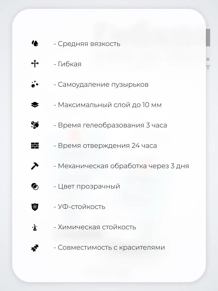 Эпоксидная смола гибкая Zepox Elastic x7 создана для изготовления наклеек, магнитов, стикеров, сувенирных изделий с заливкой смолой и гибких изделий. Мягкая эпоксидная смола прозрачная полностью. Максимальный слой заливки 10 мм для изделий и 7 мм для наклеек. В смоле присутствуют УФ-стабилизаторы и антипузырьковые добавки. Благодаря большой силе поверхностного натяжения, смола собирается в каплю на поверхности, позволяя получить эффект линзы на поверхности наклейки. Эпоксидная смола Zepox Elastic x7 отличный выбор как для новичков, так и для профессионалов.