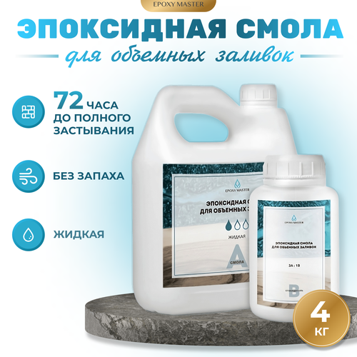 Эпоксидная смола для заливки столешниц и объемных заливок жидкая, прозрачная, 4 кг, EPOXYMASTER: сравнение цен, характеристики, фото, актуальное наличие и цены.