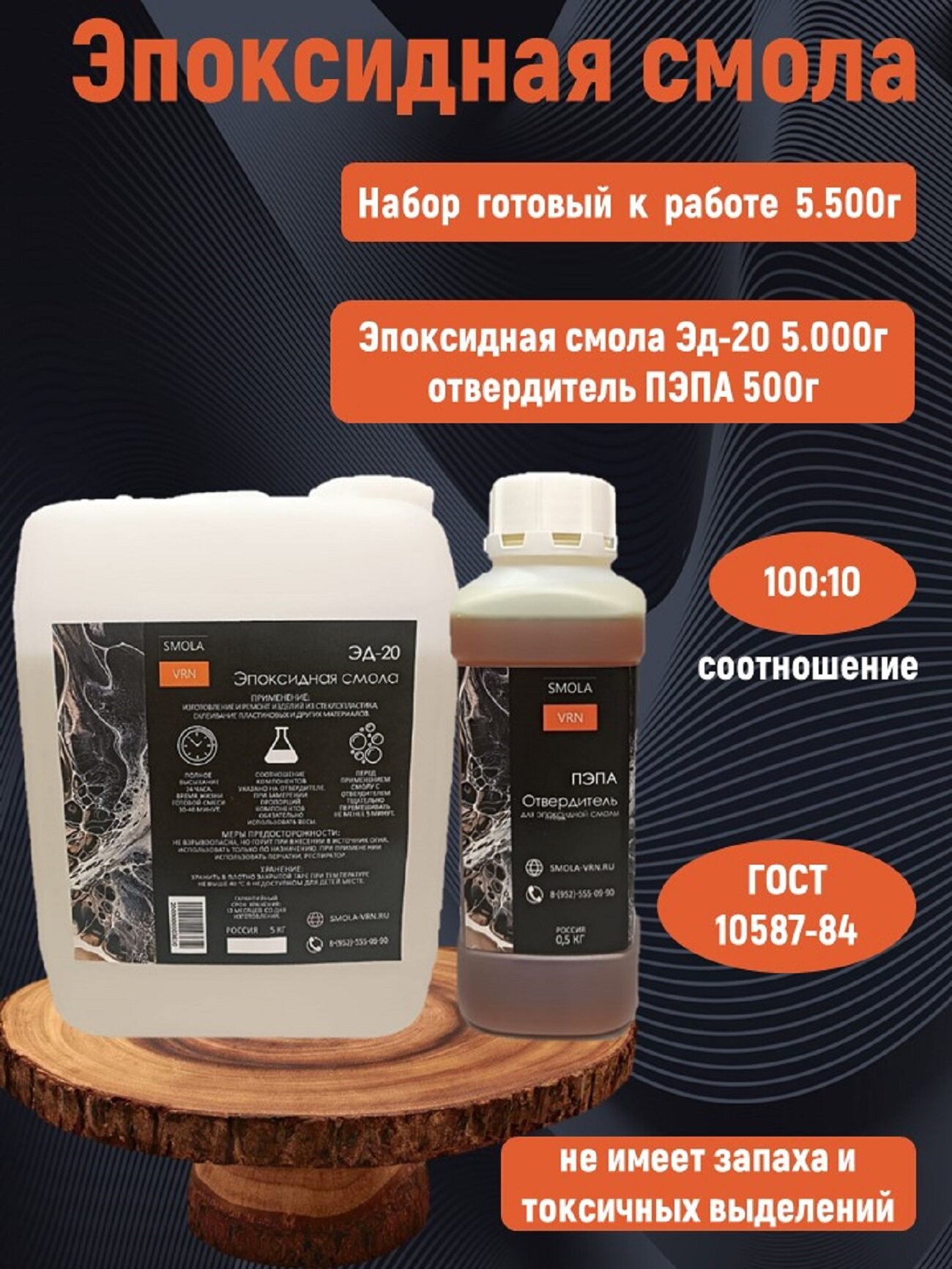 Купить Эпоксидная Смола Эд-20 5кг + Отвердитель ПЭПА 0,5кг от бренда Smola-vrn с доставкой по всей России. Эпоксидная Смола Эд-20 5кг + Отвердитель ПЭПА 0,5кг от бренда Smola-vrn: сравнение цен, характеристики, фото, актуальное наличие и цены.