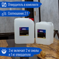 Пропорция с отвердителем: 2:1 Повышенная стойкость к царапинам и истиранию. Время застывания: 2-3 суток в зависимости от массы и толщины заливки.