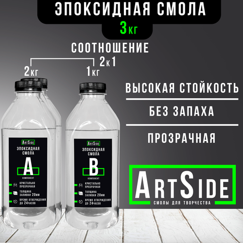 Эпоксидная смола Art Side - это высококачественный материал для творчества, который отличается своей прозрачностью и отсутствием запаха. Комплект состоит из двух компонентов, эпоксидная смола и кристально прозрачный отвердитель, который со временем не желтеет что позволяет создавать уникальные и яркие работы, которые будут выглядеть великолепно.