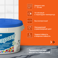 Эпоксидная затирка для плитки MAPEI Kerapoxy обладает морозостойкостью и повышенной влагостойкостью, а также противогрибковыми свойствами. Шовный заполнитель предназначен для швов размером от 1 до 15 мм. Подходит для керамической плитки, натурального и искусственного камня, клинкерной плитки, мозаики, керамогранита и декоративного кирпича. Затирка может применяться при температуре от -20 до 100 градусов Цельсия.