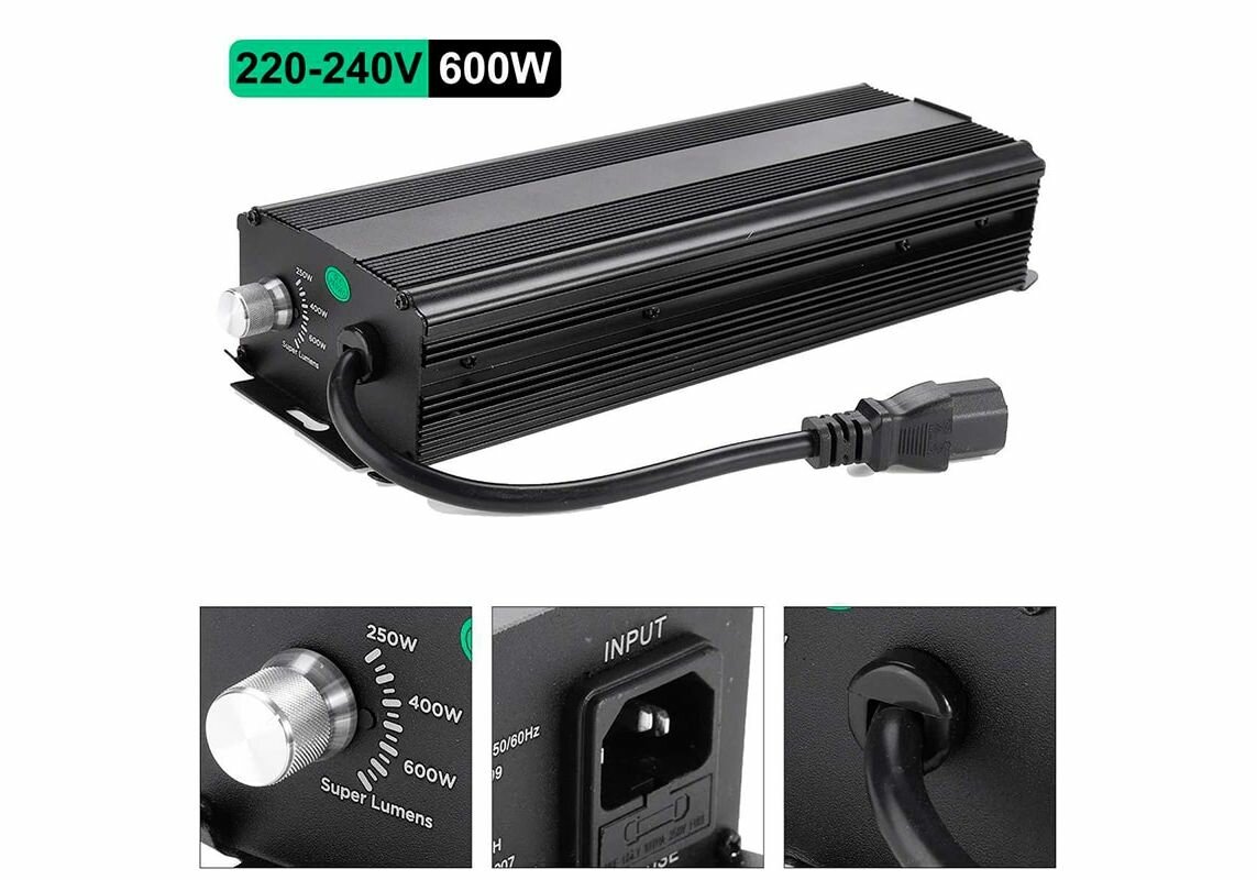 Электронный балласт с регулировкой мощности от 250 до 600 Вт, предназначен для эксплуатации в теплицах, оранжереях, а также для комнатиных растений.