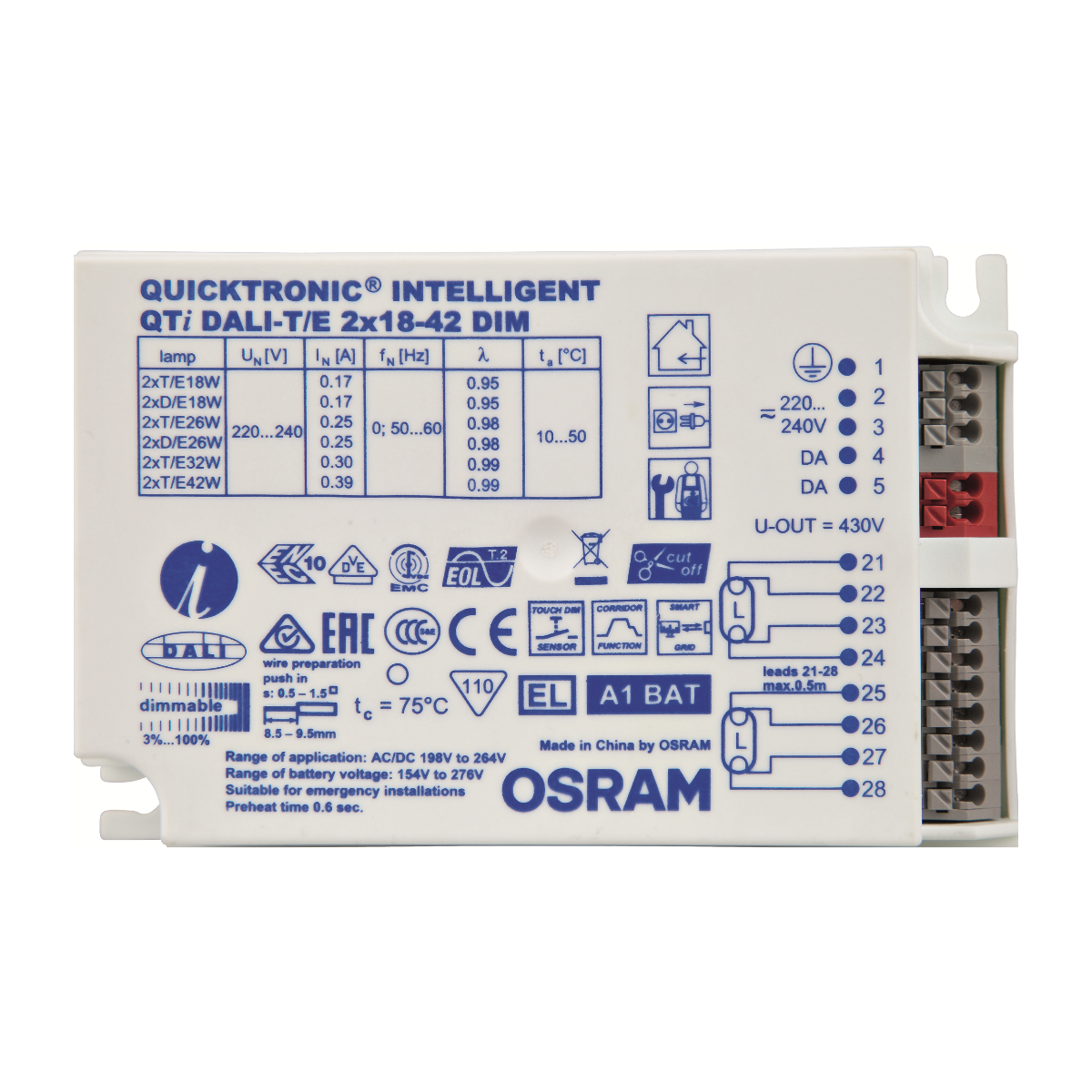 Преимущества модели OSRAM QTI DALI-T/E2X18-42 DIMVS20 очевидны: удобство установки, долговечность, универсальность и высокий уровень контроля над осветительными приборами. Выбирая ЭПРА от OSRAM, вы выбираете надежность и качество, проверенное временем.