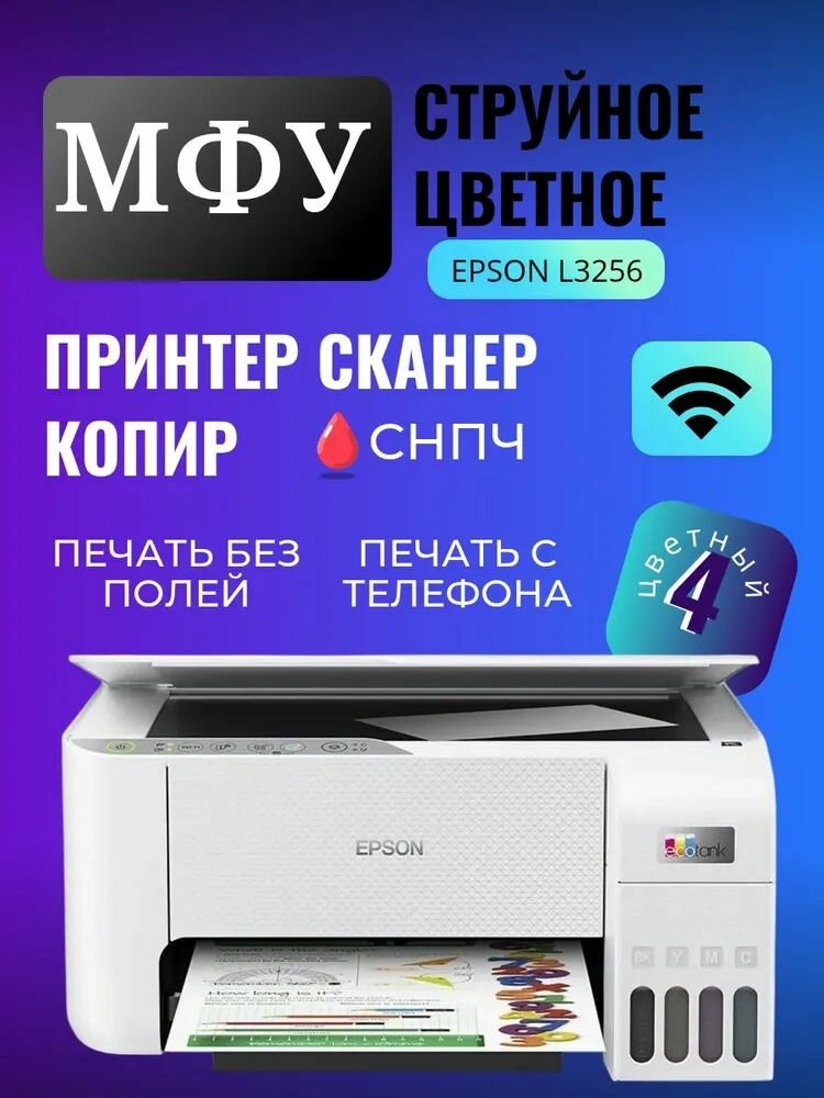 Купить Epson МФУ Струйное Epson L3256, A4 Wi-Fi с 4 бутылки высококачественных совместимых чернил, белый, бежевый с доставкой по всей России.