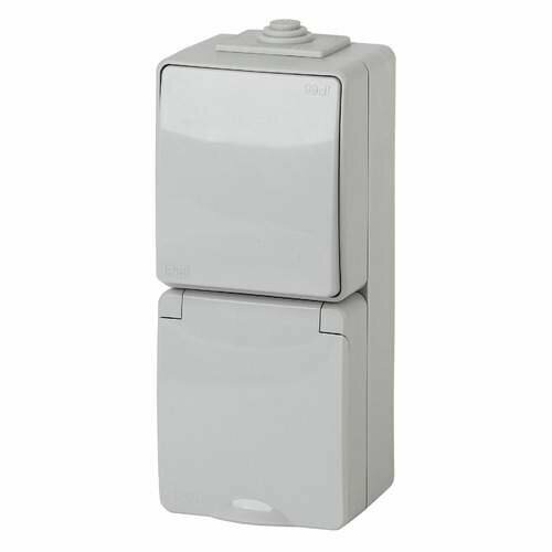 | Дополнительная информация | Блок 1-клавишный выключатель и розетка ЭРА Эксперт IP54 вертикальный с/з серый |